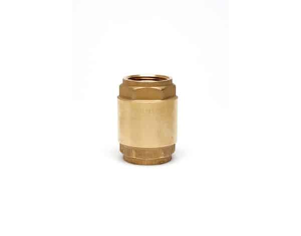 Backventil med hus och kägla i formpressad mässing. Fjäder och säte i rostfritt stål.