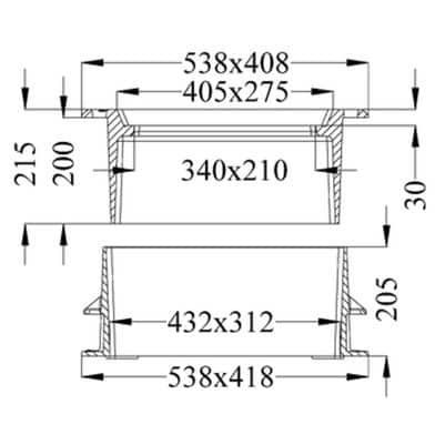 Spolpostpost teleskop ram 538 x 418 mm, REGULAR lock SP, spetthål.