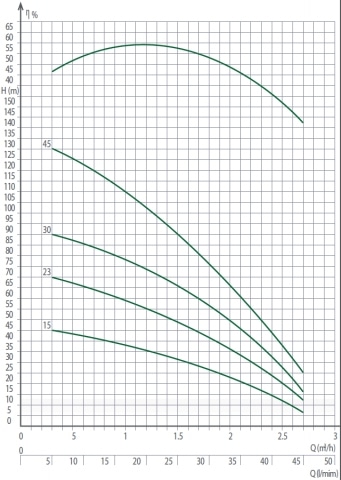 Brunnen ska vara provpumpad och vattnet får inte innehålla sand. I en borrad brunn bör pumpen monteras minst 5 meter över brunnens botten. I en öppen brunn minst 0.5 meter över botten. Kontrollera med hjälp av provpumpningsresultatet att pumpen inte förmår tömma brunnen. Vattenytan måste alltid vara minst en meter över pumpens vattenintag. Finns det risk för torrkörning ska E.M.S. nivåvakt monteras.