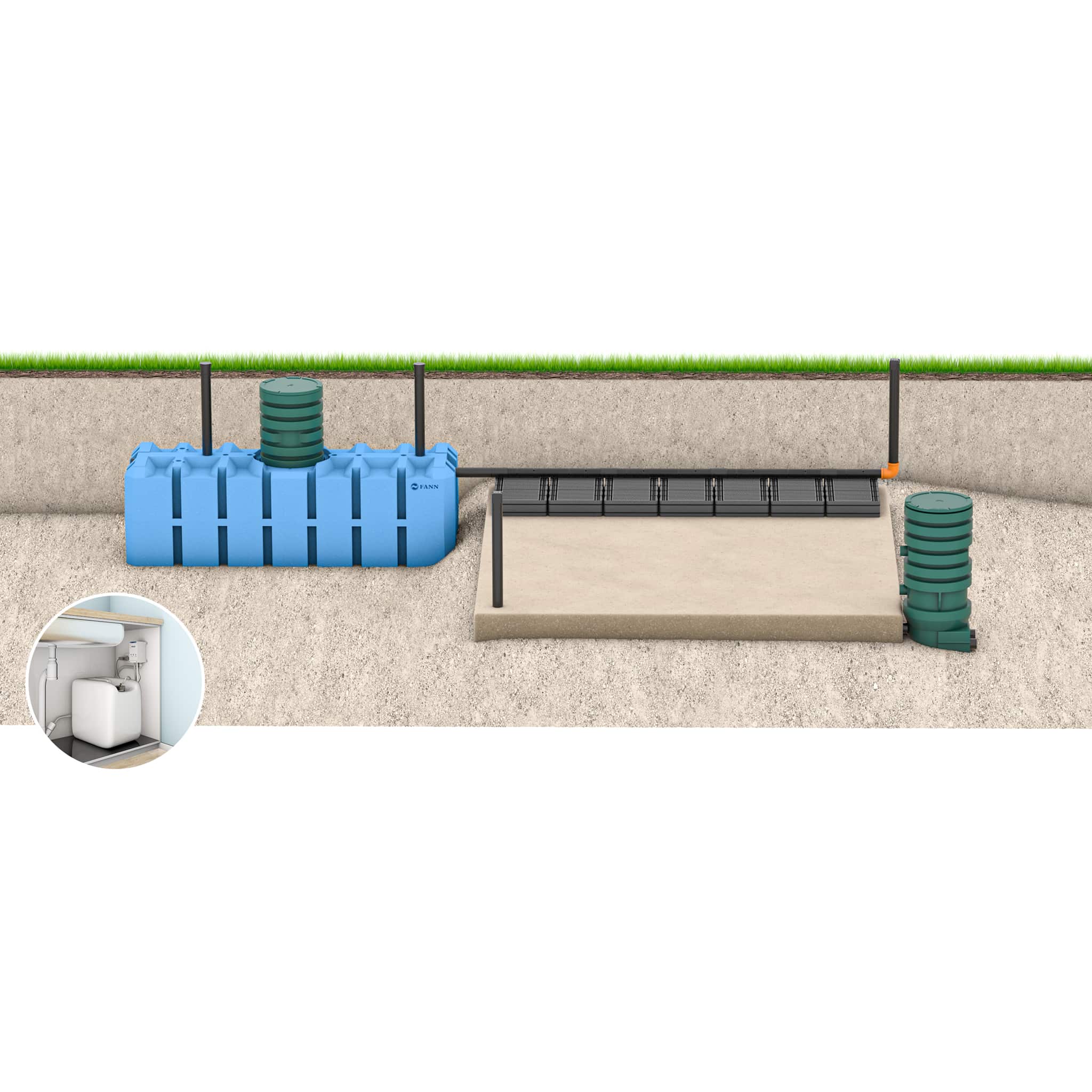 FANN INDRÄN PRO Markbädd WC+BDT 5pe EkoTreat WiFi för ett hushåll