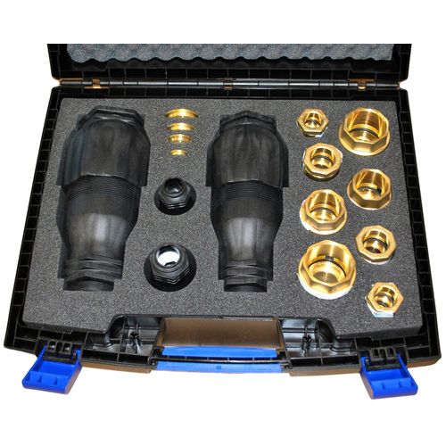 Flexilåda XL är lösningen för alla rörtyper och dimensioner i storlekarna 20-63 mm på Flexisidan, 25-50 mm och 25 x R25 50 x R40 på mässings sidan.