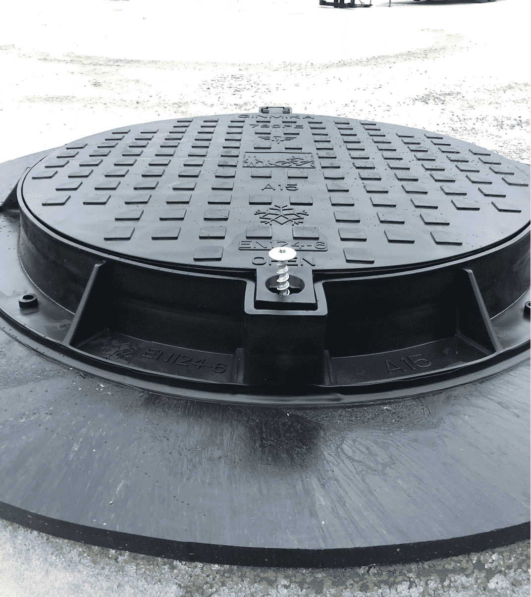 Tillverkad i HD-PE (high density polyeten) Klarar kyla slag och stötar. Ett utmärkt lock för att ersätta tunga betonglock.