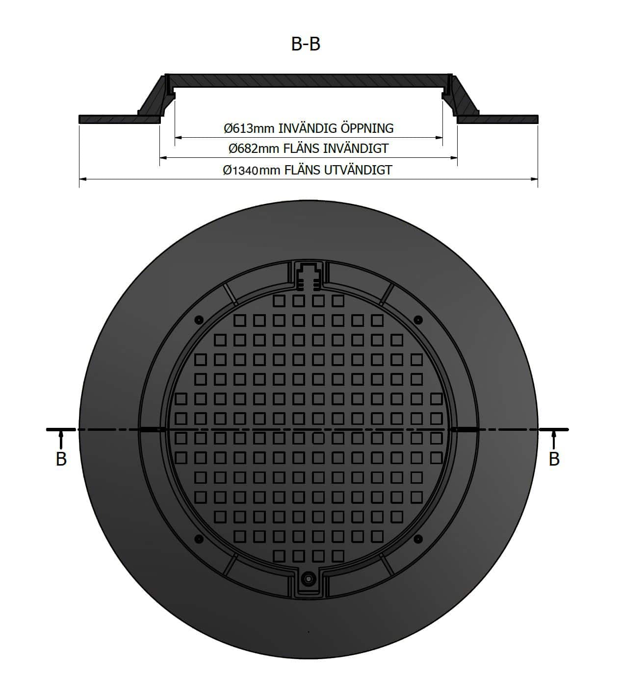 Öppningsdiameter i locket 615 mm. (Locket väger endast 8 kg)