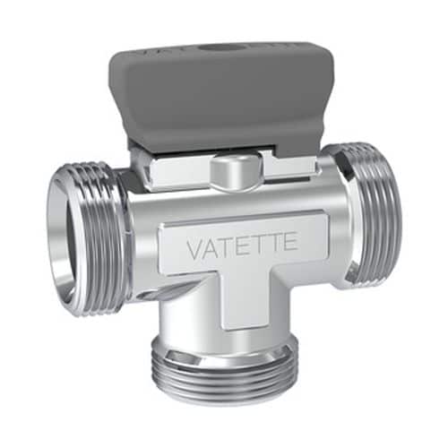 Vatette kulventil trevägs utvändig gänga med vred